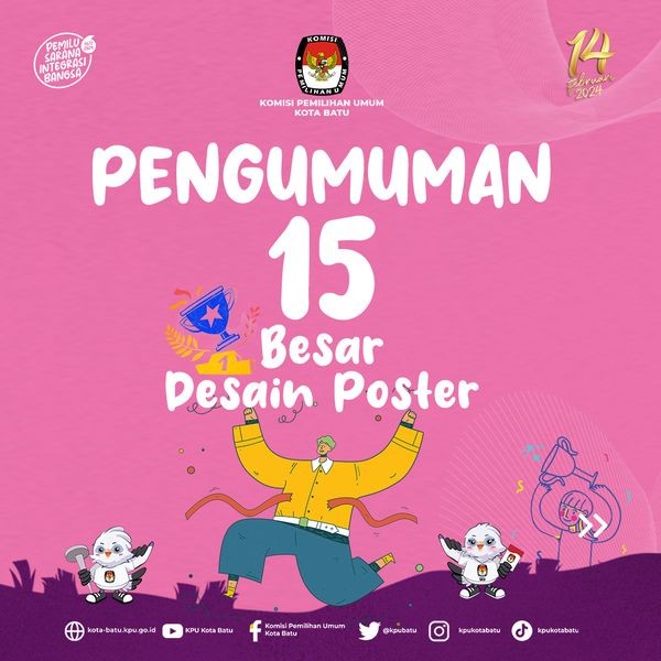 Batu, kota-batu.kpu.go.id - (26 Desember 2023) - Setelah melewati seleksi dan penilaian oleh dewan juri, akhirnya terpilih 15 poster terbaik dalam Lomba Desain Poster dan Video Pendek/Iklan Layanan Masyarakat yang diselenggarakan oleh KPU Kota Batu. 15 karya tersebut selanjutnya akan dinominasikan untuk menjadi tiga karya terbaik dan merebutkan Juara 1, 2, 3.
