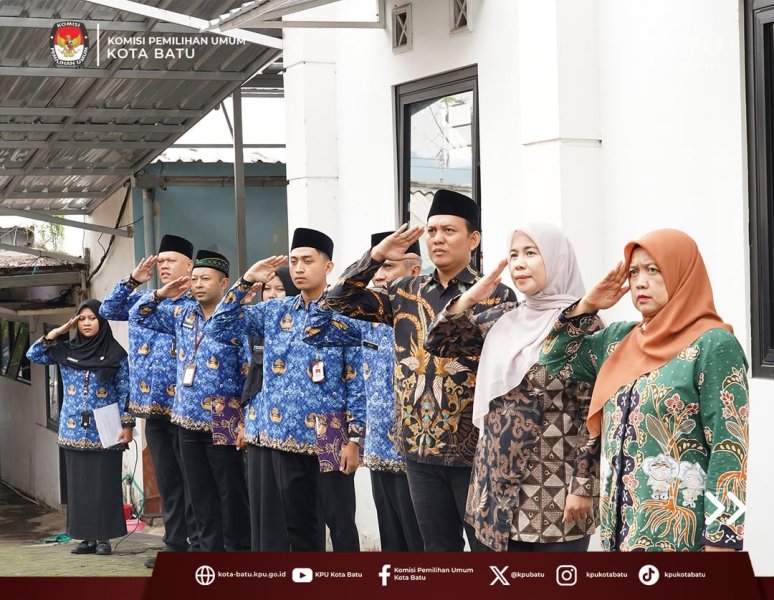 Batu, kota-batu.kpu.go.id - KPU Kota Batu melaksanakan upacara peringatan Hari Pahlawan Tahun 2025, Senin (10/11/2025). Kegiatan upacara dipimpin oleh Ketua KPU Kota Batu, Heru Joko Purwanto dan diikuti oleh anggota KPU, sekretaris, dan seluruh jajaran sekretariat.
