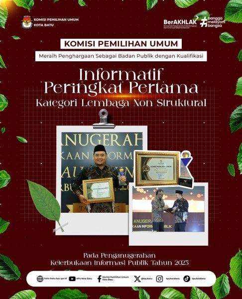 Jakarta, kota-batu.kpu.go.id - KPU meraih Penghargaan Peringkat Pertama Kualifikasi Informatif, pada Kategori Lembaga Non Struktural, dengan nilai 97,84. Penghargaan ini adalah bukti komitmen dan kinerja KPU sebagai badan publik yang terbuka, transparan dan akuntabel dalam pengelolaan informasi publik.