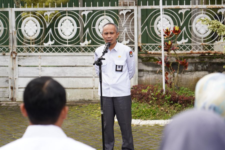 Batu, kota-batu.kpu.go.id - Sekretaris KPU Kota Batu, Rudi Gumilar, memimpin apel pagi pada Senin (26/1/2026). Dalam agenda rutin tersebut, ia menyampaikan dua pesan utama kepada jajaran sekretariat.