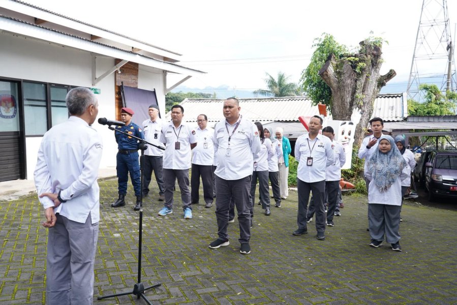 Batu, kota-batu.kpu.go.id - Sekretaris KPU Kota Batu, Rudi Gumilar, memimpin apel pagi pada Senin (23/2/2026). Dalam agenda rutin tersebut, ia menyampaikan dua pesan utama kepada jajaran sekretariat.