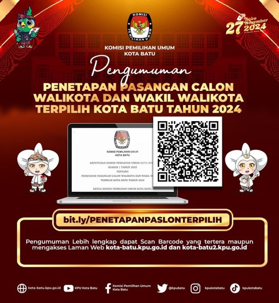 KEPUTUSAN NOMOR 1 TAHUN 2025 TENTANG PENETAPAN PASLON WALIKOTA DAN WAKIL WALIKOTA BATU TERPILIH TAHUN 2024
