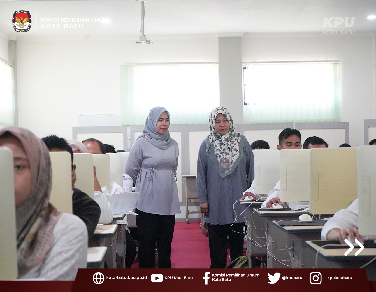 Batu, kota-batu.kpu.go.id - (6 Mei 2024) - KPU Kota melaksanakan seleksi tertulis dengan metode Computer Assisted Test (CAT) bagi calon anggota Panitia Pemilihan Kecamatan (PPK) se-Kota Batu, Senin (6/5/2024). CAT dilaksanakan di Laboratorium Komputer MAN Kota Batu dengan jumlah peserta 79 orang. Tercatat 5 orang tidak hadir.