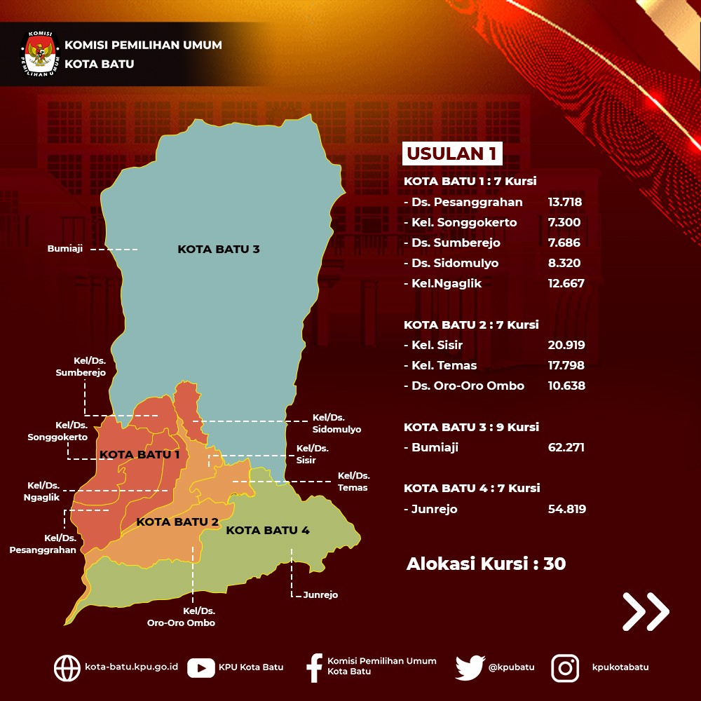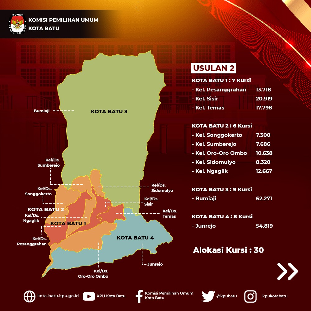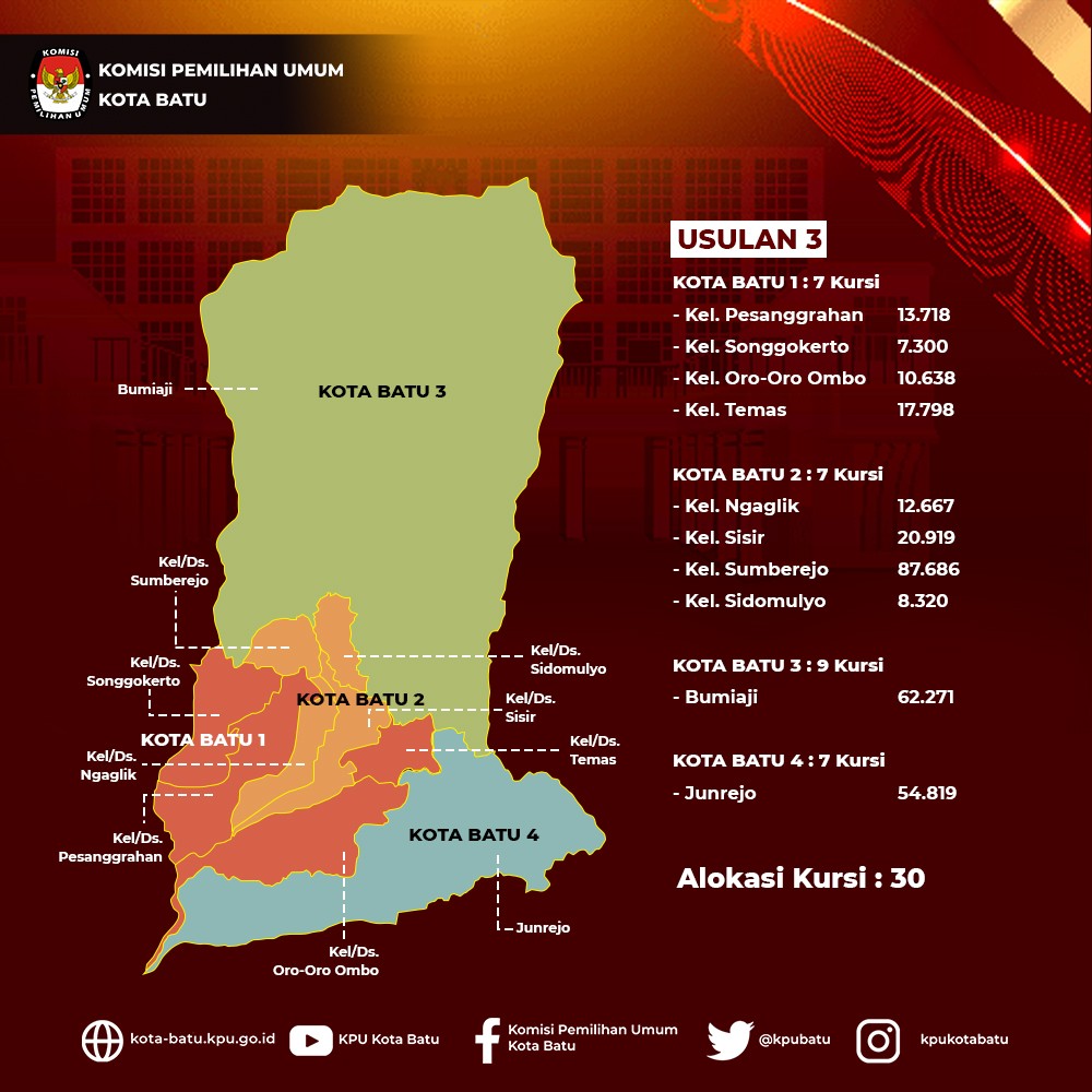 Hai #TemanPemilih Berikut adalah Rancangan Usulan Penyusunan Daerah Pemilihan dan Alokasi Kursi Anggota DPRD Kota Batu Pemilu Tahun 2024