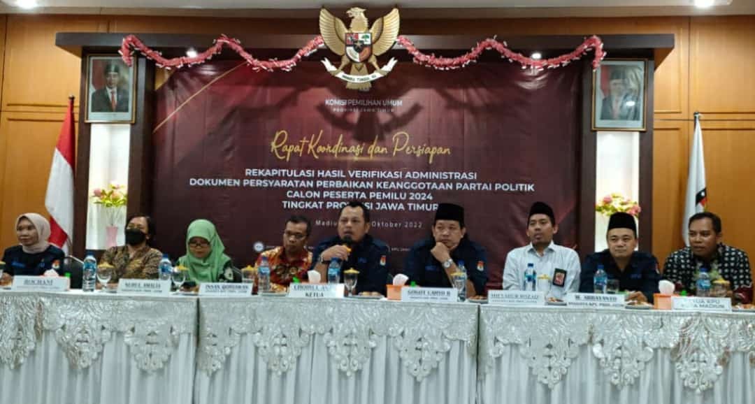 Madiun kota-batu.kpu.go.id (11 Oktober 2022) – Komisi Pemilihan Umum Kota Batu yang terdiri dari Ketua, Anggota Divisi Sosdiklih Parmas & SDM, Anggota Divisi Teknis Penyelenggara Pemilu, Sekretaris, Operator SIPOL dan Ppnpn Tekmas Hadir dalam Acara Rapat Rekapitulasi dan Persiapan Rekapitulasi hasil Verifikasi Administrasi Persyaratan Perbaikan Keanggotaan Partai Politik Calon Peserta Pemilu 2024 yang dilaksanakan selama dua (2) hari di Kota Pendekar. Dalam sambutan dan pengarahan yang diberikan oleh Rochani selaku Anggota KPU Provinsi Jawa Timur divisi SDM & Litbang Menyampaikan dua (2) hal yang pertama adalah terkait dengan Aktifitas Tahapan terutama tahapan yang akan dilaksanakan setelah ini yaitu tahapan Verifikasi Faktual, Rochani menyampaikan bahwasanya verifikasi faktual yang akan dilaksanakan oleh KPU Kab/Kota akan berbeda dengan KPU Provinsi perbedaan ini terlihat dari hal yang akan diverifikasi “KPU Provinsi ini akan menverifikasi terkait dengan Kepengurusan, Domisili Kantor dan juga keterwakilan Perempuan namun untuk KPU Kab/Kota tentunya ada hal yang istimewa karena Kab/Kota juga akan menverifikasi terkait dengan Keanggotan” Tuturnya. Dalam hal tersebut rochani juga menghimbau terkait dengan alat kerja dan juga strategi yang akan digunakan saat proses tahapan verifikasi faktual tersebut terutama mengenai pengaturan Timeline mengingat waktu yang begitu padat, dalam hal ini juga ada dua kewenangan dan dua subtansi yang berbeda sehingga butuh treatment tersendiri dalam pelaksanaannya. Hubungan Komunikasi dengan LO partai politik juga disinggung oleh Rochani dalam pengarahannya, Komunikasi ini menjadi salah satu strategi yang begitu penting mengingat Verifikator yang terbatas. Rochani juga menggaris bawahi terkait dengan tanggal 14 Oktober 2022 yang akan datang “nanti saat 14 oktober 2022 dihimbau untuk KPU Kab/Kota agar mencermati mengingat pengumuman terkait Verifikasi Administrasi akan diumumkan dihari tersebut” ujarnya. KPU Kab/Kota juga dihimbau untuk mengamati berbagai potensi hukum yang sekiranya akan terjadi di wilayah masing-masing mengingat situasi politik dimasing-masing wilayah akan berbeda dan haruslah melakukan strategi persiapan yang matang terkait dengan dukungan Teknis pada saat pelaksanaan Verifikasi Faktual nantinya salah satunya adalah pencegahan terhadap mobilisasi masa dengan melakukan komunikasi terhadap pihak-pihak maupun instansi terkait sehingga dapat menciptakan kondusifitas terhadap verifikator yang akan terjun kelapangan. Berikutnya Rochani menyampaikan arahannya terkait dengan pembentukan badan Adhoc yang akan segera dilaksanakan dalam waktu dekat Turut Hadir pula dalam acara ini Ketua KPU Provinsi Jawa Timur Choirul Anam, Anggota KPU Provinsni Jawa Timur Insan Qoriawan, Miftahur Rozaq, Nurul Amalia dan juga sekretaris KPU Provinsi Jawa Timur Nanik Karsini selain itu juga hadir 38 KPU Kab/Kota Se-Jawa Timur. (okt)