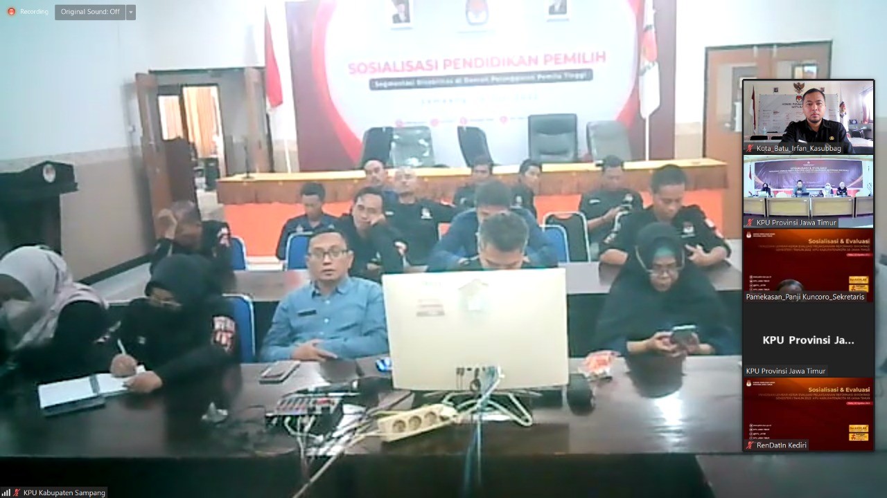 Batu, Kota-Batu.kpu.go.id - Anggota KPU Kota Batu, Erfanudin, Heru Joko Purwanto, Thomi Rusy Diantoro beserta Kasubbag Anggaran dan Data, Irfan Darmawan mengikuti Sosialisasi Pengisian Lembar Kerja Evaluasi (LKE) Pelaksanaan Reformasi Birokrasi, kemarin(10/8).
