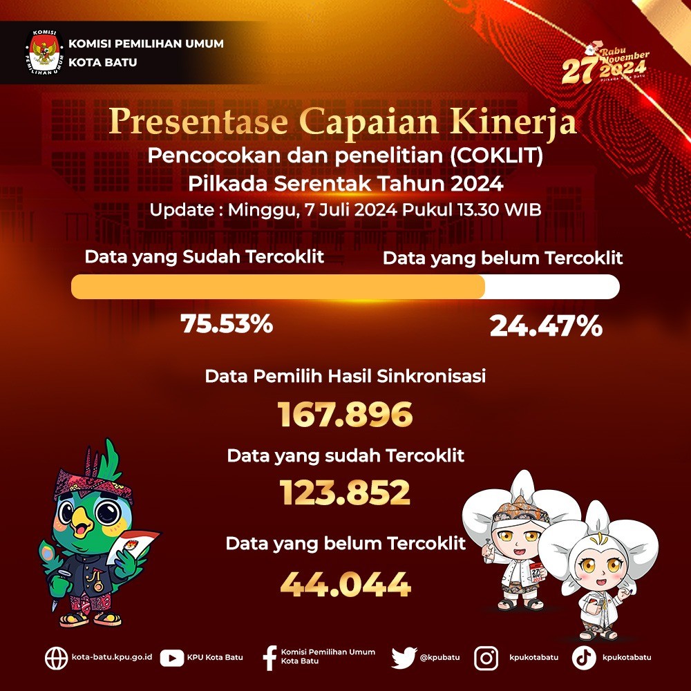 “Ya, walaupun kita tahu kekurangan seperti masih kesulitan untuk memasukan secara e-Coklitnya. Dari semua tahapan Coklit yang berlangsung dari 24 Juni hingga 24 Juli, kami memberikan jangka waktu hingga 20 Juli. Karena untuk mengevaluasi data-data yang kurang pada sisa waktu yang ada, yang selanjutnya data tersebut segera dibuat Daftar Pemilih Sementara (DPS),” paparnya.