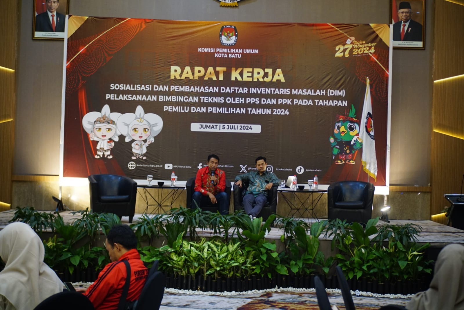 Batu, kota-batu.kpu.go.id - (6 Juli 2024) - KPU Kota Batu menggelar Bimbingan Teknis (Bimtek) dan Evaluasi Coklit Minggu Pertama pada Pilkada Tahun 2024 di Hotel Amartha Hills, Sabtu (6/7/2024). Ketua KPU Kota Batu, Heru Joko Purwanto menjelaskan kegiatan ini dalam rangka evaluasi hasil kerja Pantarlih sepanjang minggu pertama.