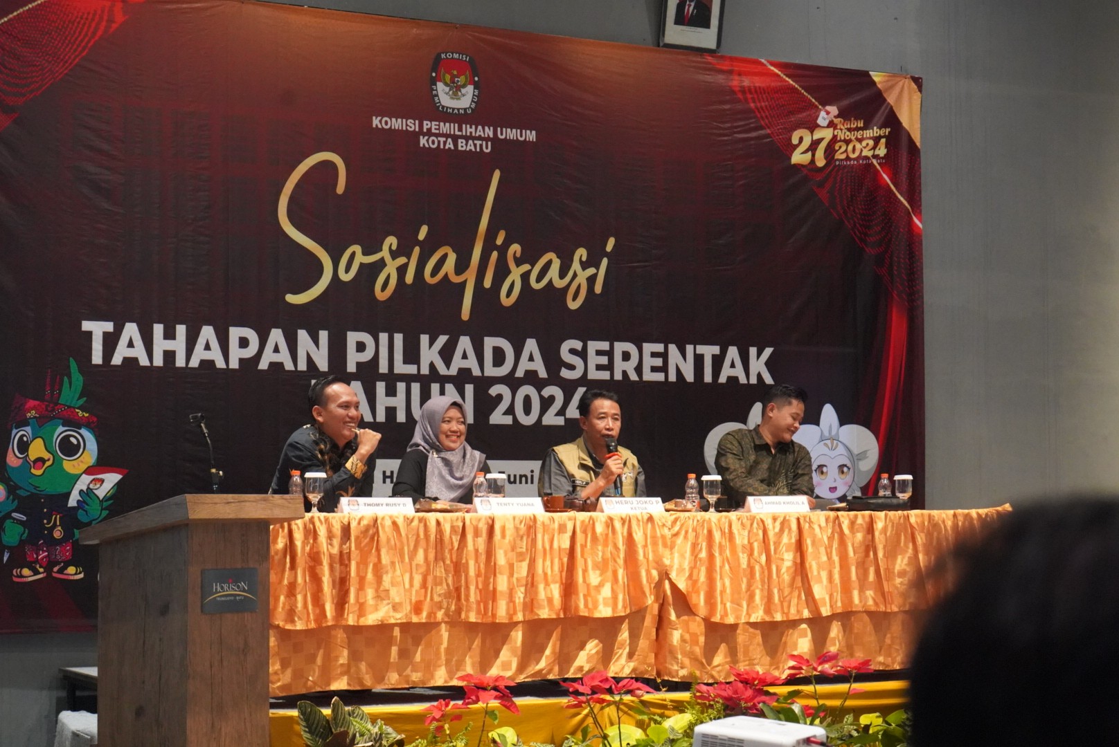 Batu, kota-batu.kpu.go.id - (2 Juli 2024) - PPK dan PPS sebagai bagian badan ad-hoc yang bersentuhan langsung dengan masyarakat memiliki peran penting dalam kegiatan sosialisasi dan pendidikan pemilih. Oleh karena itu, ide dan masukan yang berasal dari anggota PPK dan PPS diperlukan oleh KPU Kota Batu untuk merumuskan rencana strategis optimalisasi sosialisasi Pilkada 2024. Pesan tersebut disampaikan oleh Anggota KPU Kota Batu Divisi Sosdiklih, Parmas, dan SDM, Ahmad Kholil Almansur dalam Internalisasi PKPU Nomor 9 Tahun 2022 tentang Partisipasi Masyarakat dalam Pemilihan, Selasa (2/7/2024) di Aula Kantor Kecamatan Batu. Kegiatan yang dihadiri oleh ketua dan anggota PPK serta ketua PPS se-Kota Batu tersebut berlangsung menarik. Kholil mengungkapkan, kegiatan sosialisasi merupakan sarana penting mengenalkan dan menyebarluaskan informasi kepemiluan kepada masyarakat. Pada saat yang sama, sosialisasi juga menjadi sarana branding KPU dan seluruh badan ad-hoc. “Kita harus berusaha agar kegiatan sosialisasi bisa dikemas secara menarik sehingga masyarakat antusias untuk mengikuti,” ajaknya. Anggota PPK dan PPS yang hadir bersepakat untuk memasifkan agenda sosialisasi untuk menghadapi Pilkada 2024. Adapun beberapa masukan terkait strategi sosialisasi, antara lain; (1) Memaksimalkan sosialisasi bersifat anggaran dan non-anggaran; (2) Melaksanakan sosialisasi setiap tahapan Pilkada 2024; dan (3) KPU Kota Batu sharing program dan kegiatan sosialisasi kepada PPK dan PPS. (Ats)