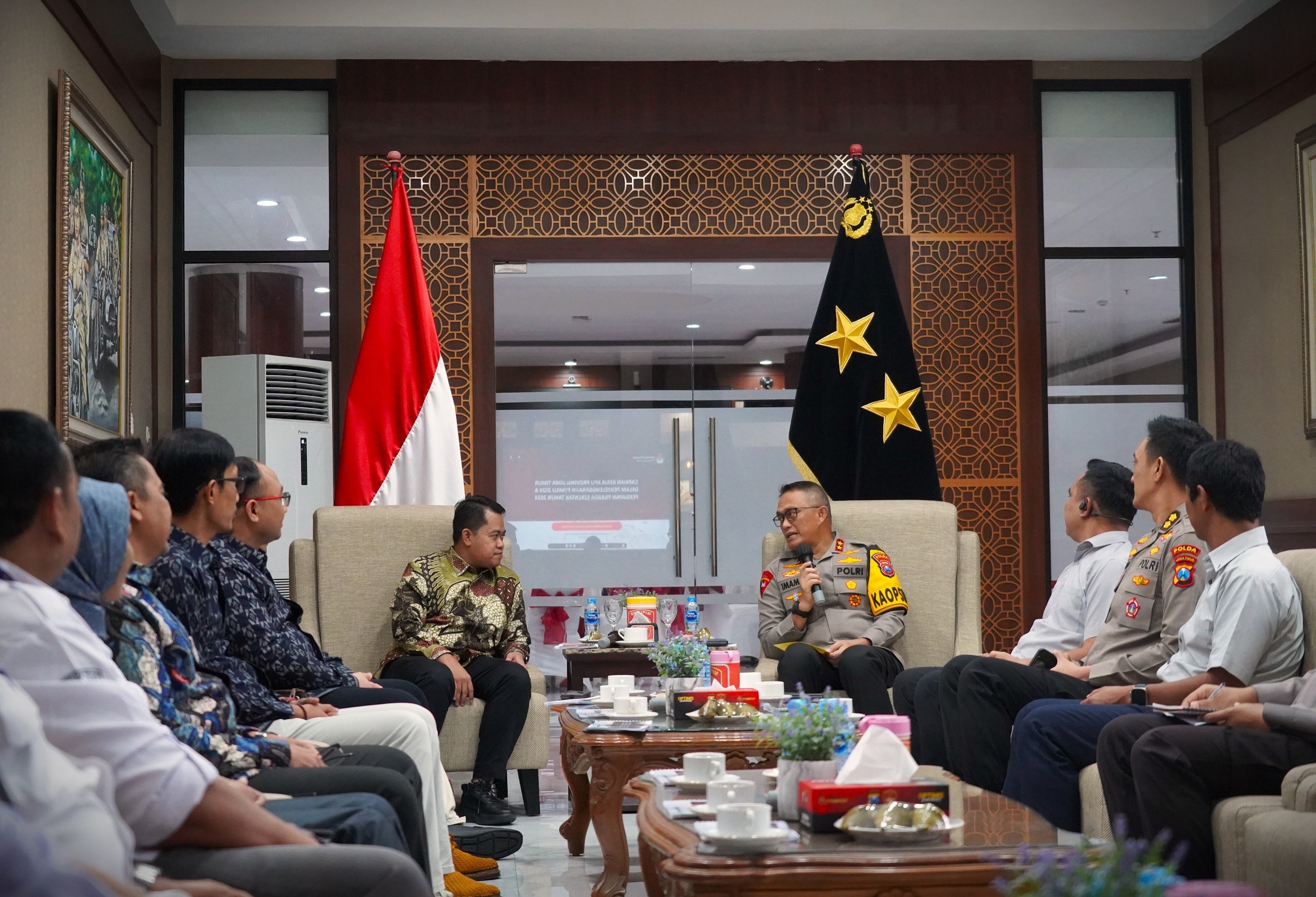 Bertempat di kantor Polda Jatim, jalan Ahmad Yani No.116 Surabaya, Audiensi diterima langsung oleh Kapolda Jatim, Irjen Imam Sugianto, Kabag Pengendalian Operasi (Dalops), Kompol Arjaka, serta Kasubdit I Direktorat Intelijen Keamanan (Dit Intelkam), AKKP Suhartono beserta jajaran lainnya.