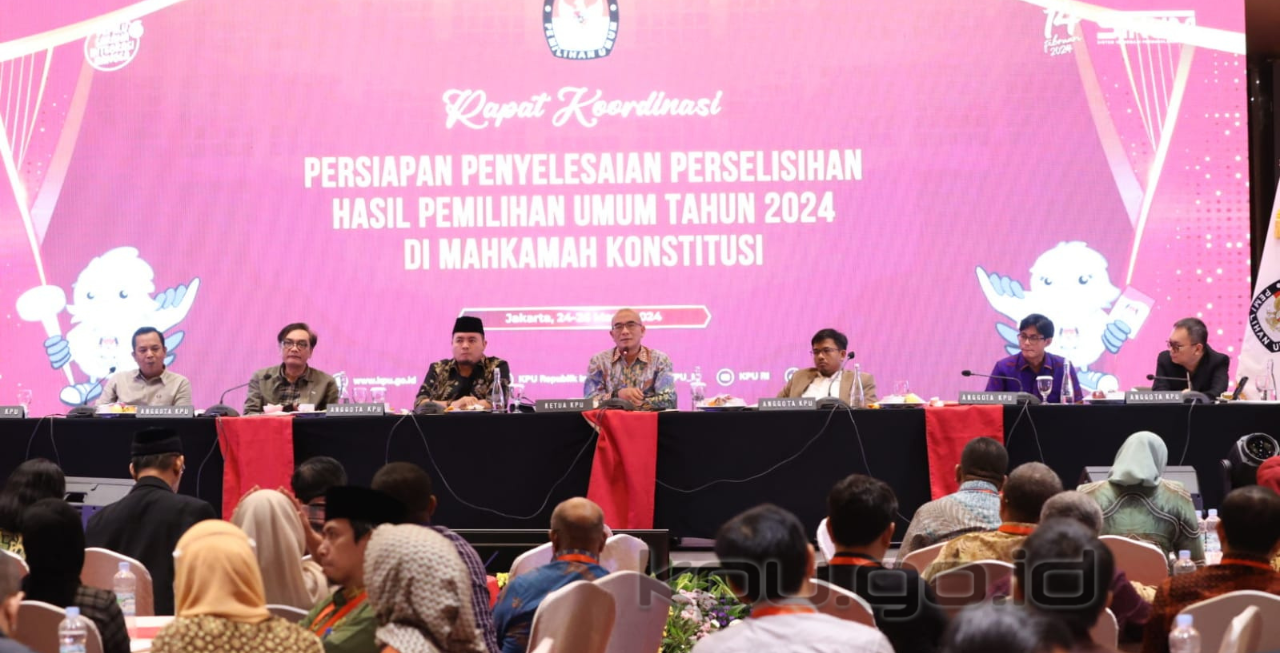 Dalam sambutannya, Hasyim menyampaikan rapat ini untuk memetakan sejak awal terkait PHPU. Untuk itu, penting melihat kembali catatan-catatan saat rekapitulasi dari tingkat kabupaten hingga nasional, catatan kejadian khusus hingga catatan keberatan yang diajukan saksi saat rekapitulasi. Hal tersebut dapat menjadi bahan awal untuk memetakan dan melihat potensi permasalahannya.