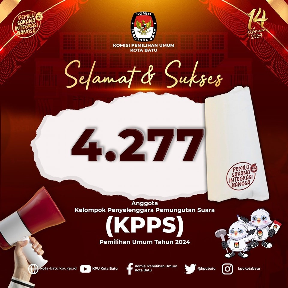 Batu, kota-batu.kpu.go.id - (25 Januari 2024) - Panitia Pemungutan Suara (PPS) desa/kelurahan se-Kota Batu secara resmi melantik sebanyak 4277 anggota Kelompok Penyelenggara Pemungutan Suara (KPPS) Pemilu 2024, Kamis (25/1/2024). Prosesi pelantikan dilaksanakan pada 24 titik lokasi di Kota batu secara serentak. Ketua KPU Kota Batu, Heru Joko Purwanto yang hadir dalam momen pelantikan KPPS se-Desa Pendem mengatakan bahwa salah satu modal penting sebagai anggota KPPS ialah integritas. Sikap ini, kata Heru, akan berpengaruh terhadap pelaksanaan tugas dan hasil kerja KPPS. “Kata kuncinya, KPPS adalah ujung tombak suksesnya Pemilu 2024,” ujarnya. Heru menyampaikan jika komposisi anggota KPPS pada pemilu kali ini didominasi oleh generasi muda atau milenial. Bukan tanpa alasan, sebab Pemilu 2024 mengoptimalkan penggunaan teknologi informasi demi tercapainya efisiensi dan efektivitas. “Tentu, generasi muda adalah yang dinilai mampu menggunakan sarana teknologi informasi dengan baik. Oleh karena itu, beri saya 100 pemuda, maka akan saya guncang dunia,” ucap Heru memberi semangat. Selain pelantikan, seluruh anggota KPPS juga akan dibekali materi tentang tata kerja KPPS, pelaksanaan pendirian tempat pemungutan suara (TPS), hinggga pemahaman tahapan pemungutan dan penghitungan suara pada 14 Februari 2024 nanti. Adapun agenda pelantikan KPPS pada 25 Januari 2024 ini dilakukan di seluruh Indonesia. Jumlah KPPS mencapai 5.741.127 orang untuk 820.161 TPS dan tersebar pada 71.000 titik. Sebanyak 5.709.898 bibit pohon juga akan ditanam secara serentak. (Ats)