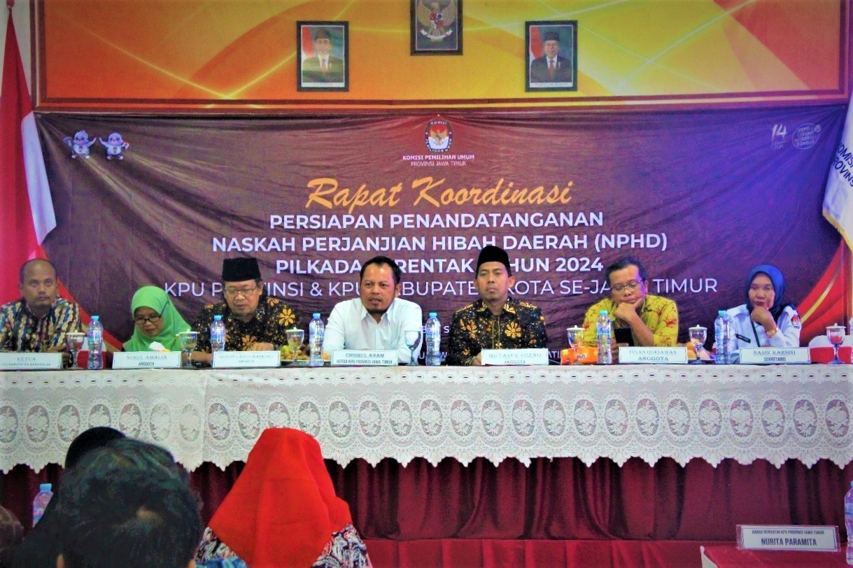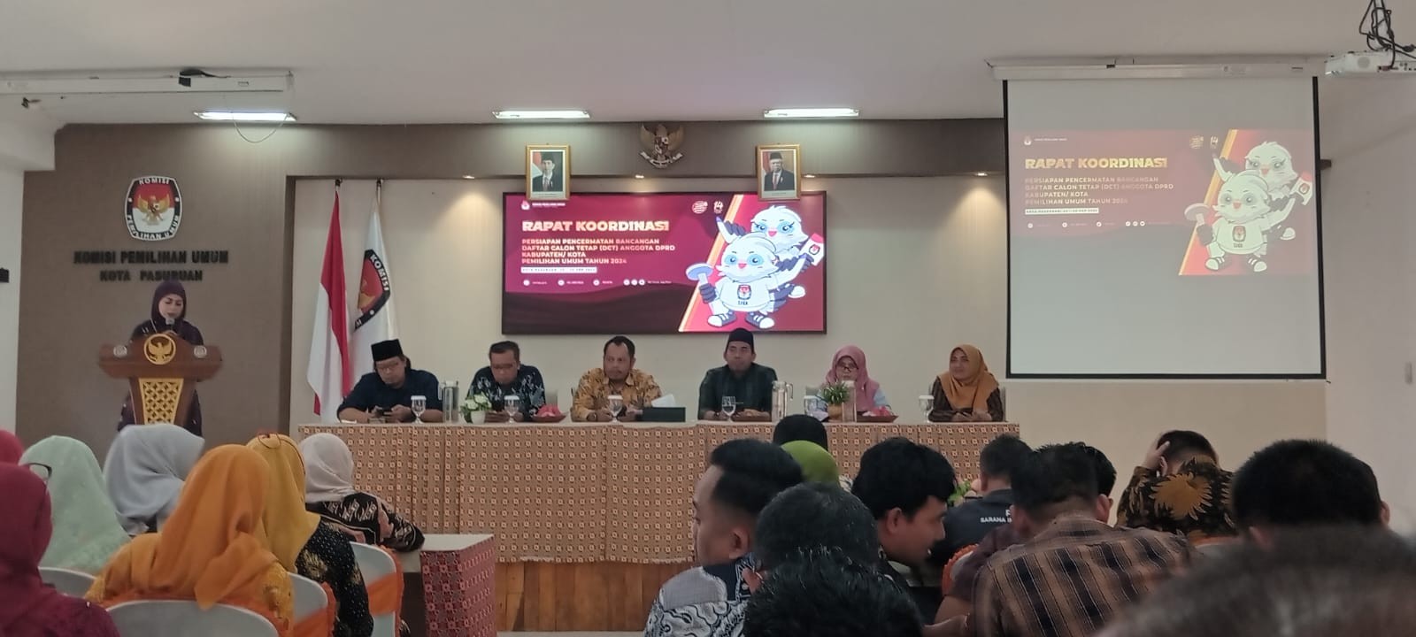 Pasuruan, kota-batu.kpu.go.id - (22 September 2023) - KPU Provinsi Jawa Timur menggelar Rapat Koordinasi Persiapan Pencermatan Rancangan Daftar Calon Tetap (DCT) Anggota DPRD Kabupaten/Kota Pemilu Tahun 2024, Jum’at-Sabtu (22-23/9/2023) di Aula Kantor KPU Kota Pasuruan. Peserta rakor ialah anggota KPU dan kasubbag Teknis Penyelenggaraan KPU kabupaten/kota se-Jawa Timur. Ketua KPU Jawa Timur, Choirul Anam mengatakan bahwa setiap KPU kabbupaten/kota harus sudah memiliki kesiapan menghadapi tahapan DCT, baik pada masa pencermatan, maupun penyusunan dan penetapan pada bulan Oktober dan November mendatang. “Suka tidak suka, mau tidak mau ini (tahapan DCT) pasti akan dilaksanakan, akan dieksekusi oleh KPU,” tegasnya. Anam mengungkapkan hingga saat ini belum ada petunjuk teknis dari KPU RI tentang penyusunan dan penetapan DCT. Namun, ia berharap tiap KPU kabupaten/kota aktif melakukan komunikasi, baik formal maupun informal kepada seluruh peserta pemilu untuk mengantisipasi kemungkinan adanya permasalahan dalam tahapan DCT. Terakhir, Anam berpesan agar divisi teknis bisa proaktif mengikuti tahapan pengadaan logistik yang digawangi oleh divisi KUL, sebab divisi teknis ialah pengguna atau user utama logistik pemilu. (Ats)